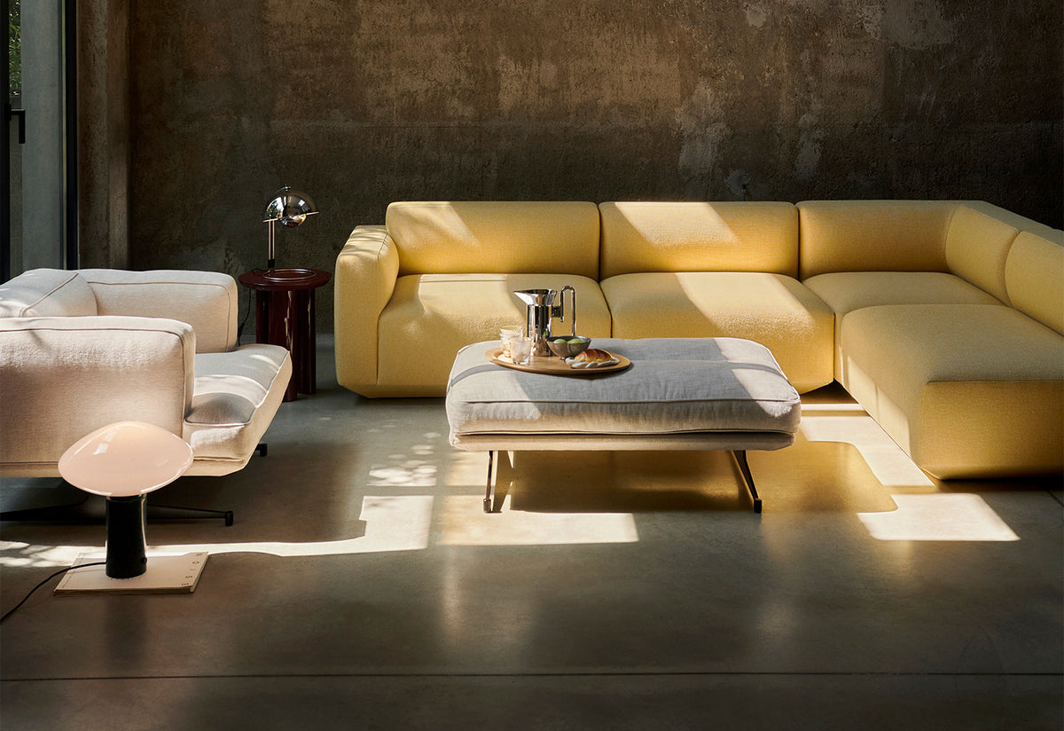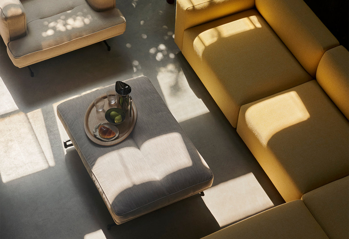 The pouf introduces a new dimension to the Inland range, offering a place to recline and put your feet up. It can serve as an extension of the Inland sofa, functioning as a chaise lounge or as an additional seat whenever required. Moreover, the pouf's shape and size make it a practical alternative to a coffee table; simply add a tray on top for added functionality.