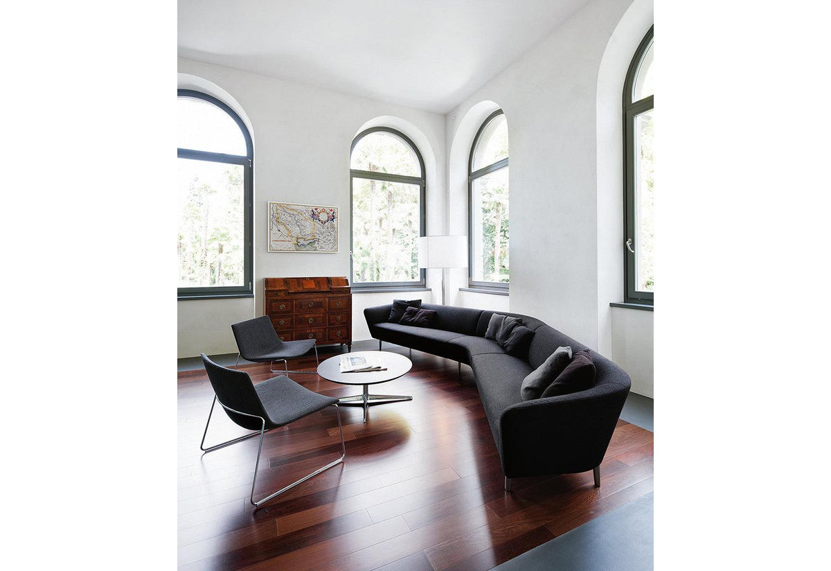 Loop is a modular system of soft sofa elements that combine in short clusters or long, flowing lines as unique and expressive as a signature. While graphic in form and silhouette, the overall effect is almost architectural. In large spaces, the linear form inscribes areas for waiting, resting and meeting. At home, it may be compact or commanding depending on what is required.