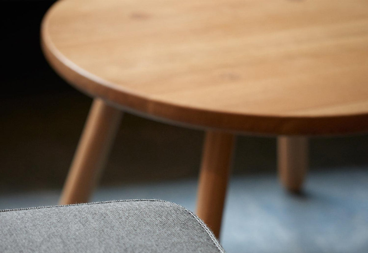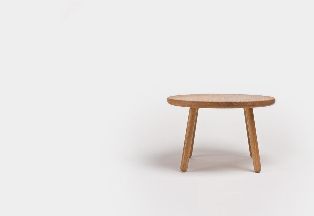 This circular coffee table employs the archetype details of the Series One collection by Another Country; solid turned legs, a craft-inspired peg system detail and a tabletop made from solid European oak.
