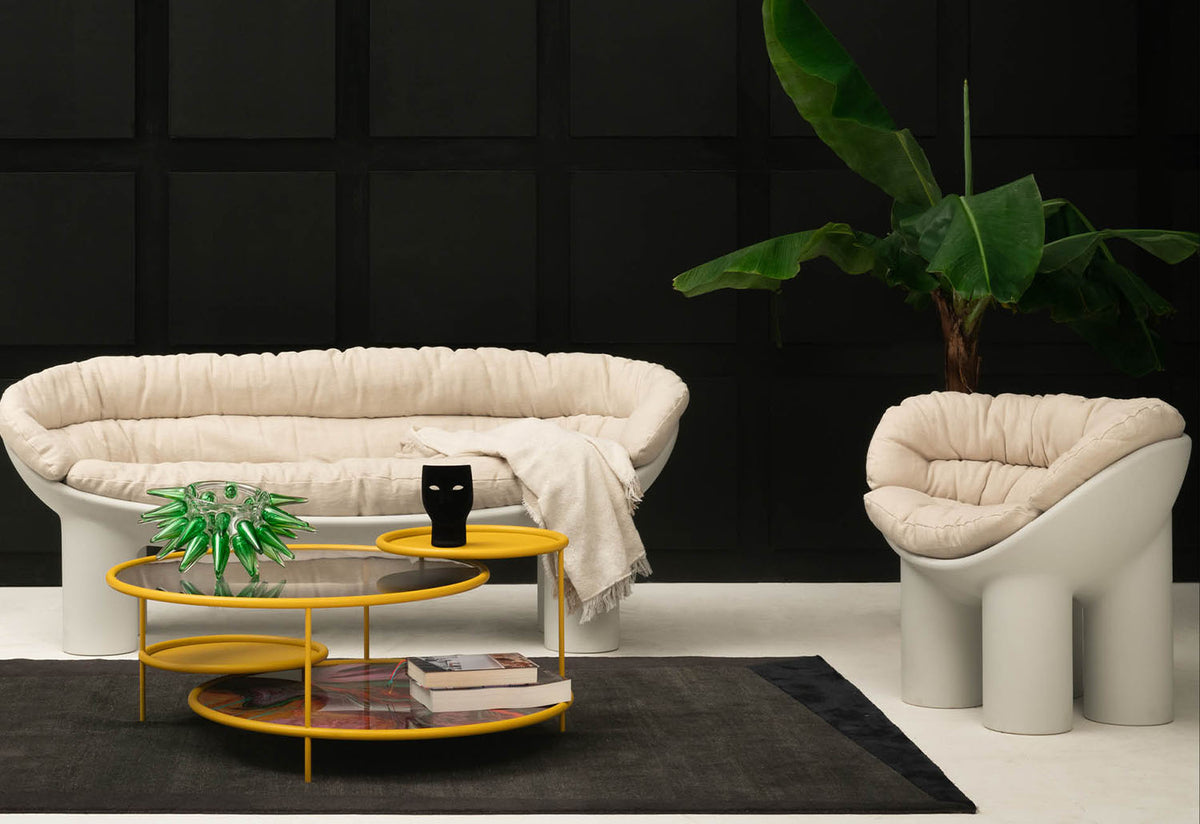 Designed by British designer Faye Toogood, the Roly Poly chair blurs the line between furniture and sculpture. Characterised by its bowl-shaped seat and cylindrical legs, the chair has a welcoming presence, enhanced by the jubilant colours it is available in.