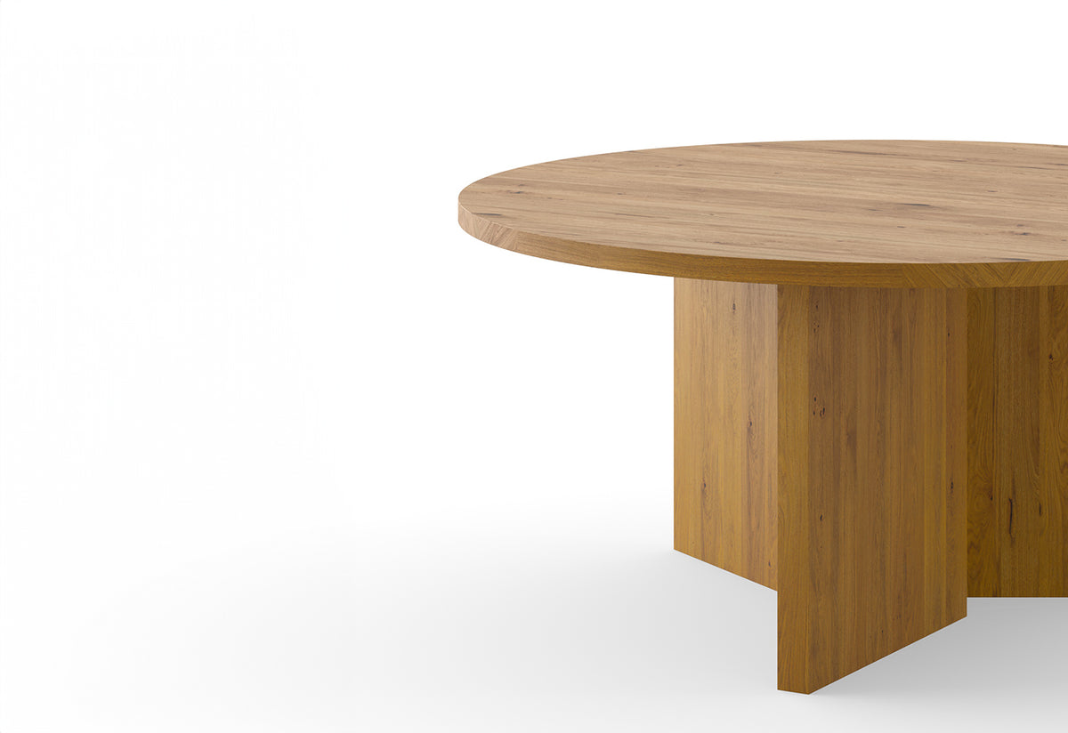 Philipp Mainzer’s Round Kaname Dining Table, aptly named after the Japanese word for “pivot” or “vital point,” is characterised by its distinctive pivot-leg detail. The design evokes a sense of balance and stability, conveyed through clean, refined lines.