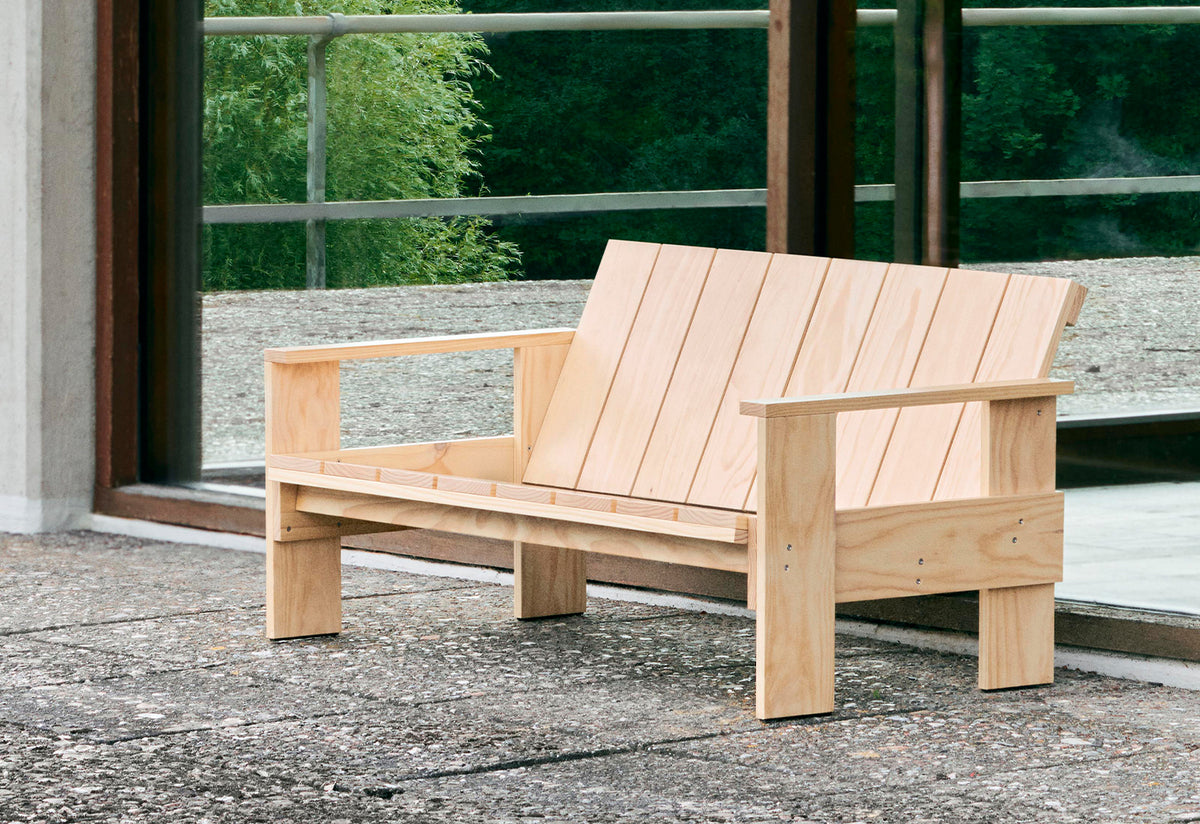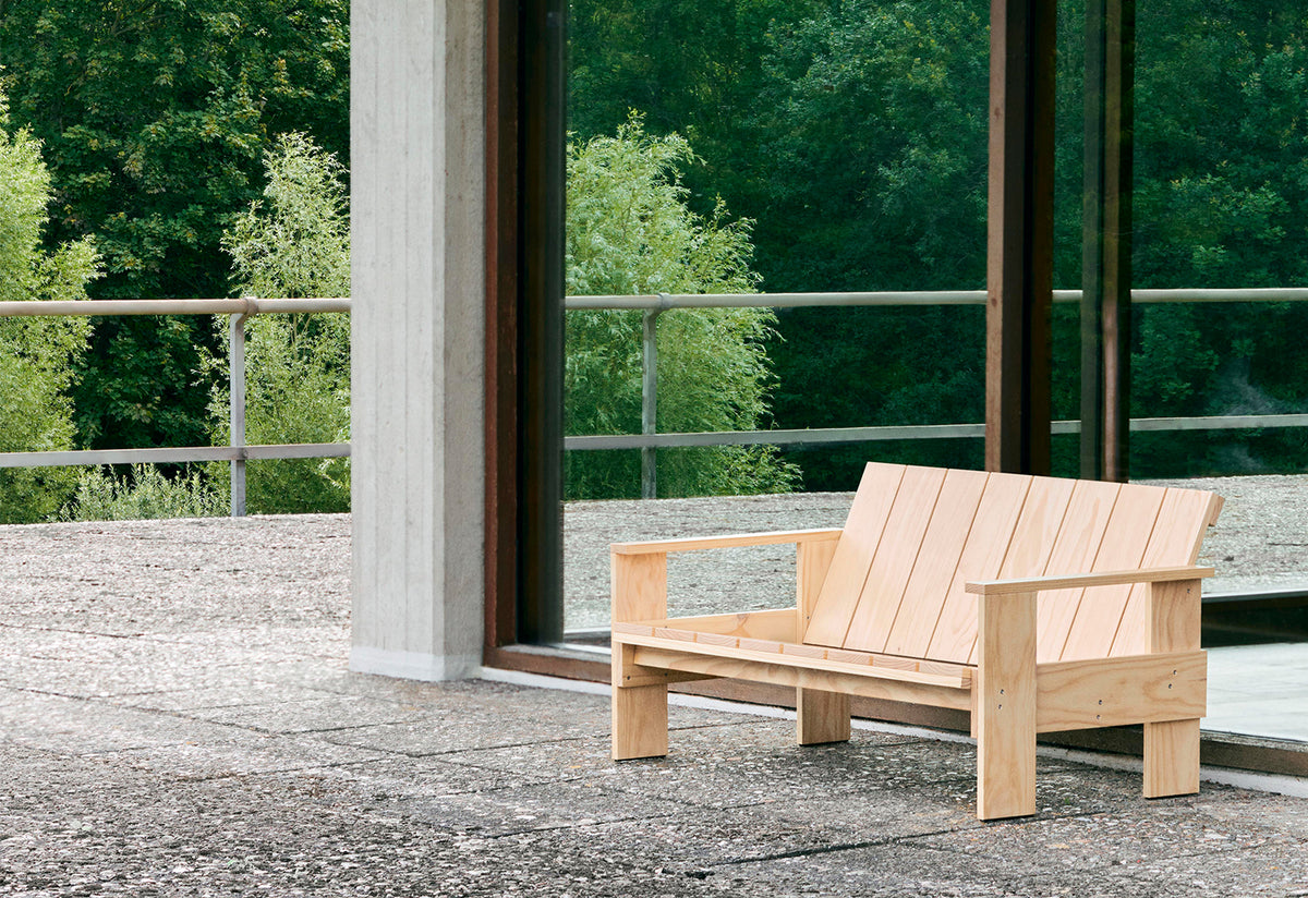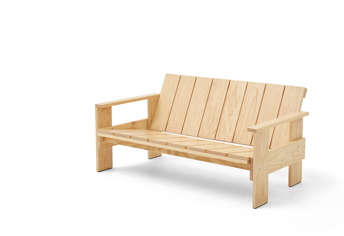The Crate Collection has a rich history dating back to 1934. It was originally designed by the renowned Dutch architect and designer Gerrit Rietveld with the aim to create modern and functional furniture using surplus wooden crates. The collection still retains the designer's aesthetic vision and precise proportions, with a simple and well-designed form. The collection includes a lounge chair, lounge sofa, dining chair, dining bench, low table, and side table, all made of solid pine and finished with a water-based coating. This makes the Crate Collection perfect for a variety of settings, both indoors and outdoors, from cafes and public spaces to private gardens.