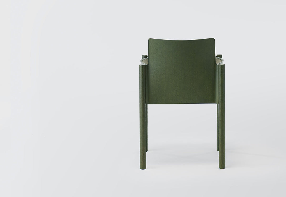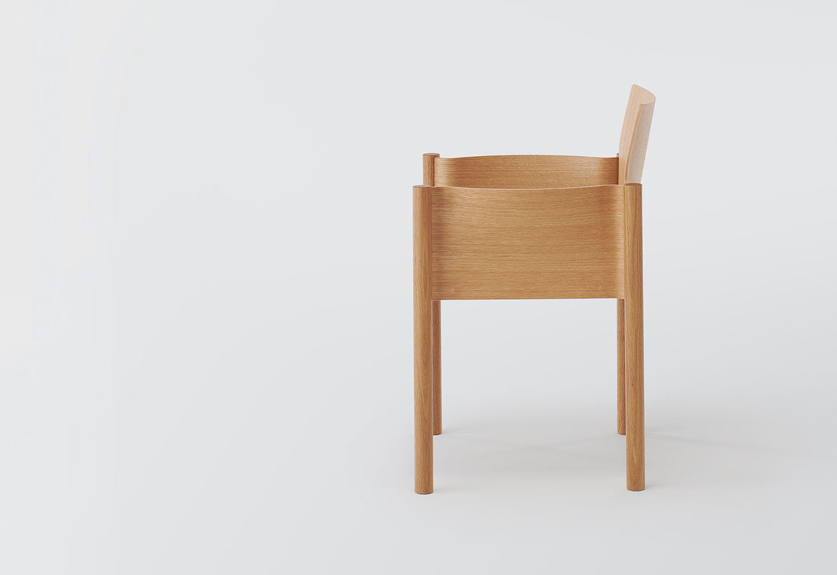 The experienced artisans at Koyori have thoughtfully designed the chair using three different moulds for the backrest, armrest and seat, ensuring no need for unadorned reinforcement. It has been crafted from moulded plywood, a material chosen not only for its strength and structural stability but also for its aesthetic qualities.