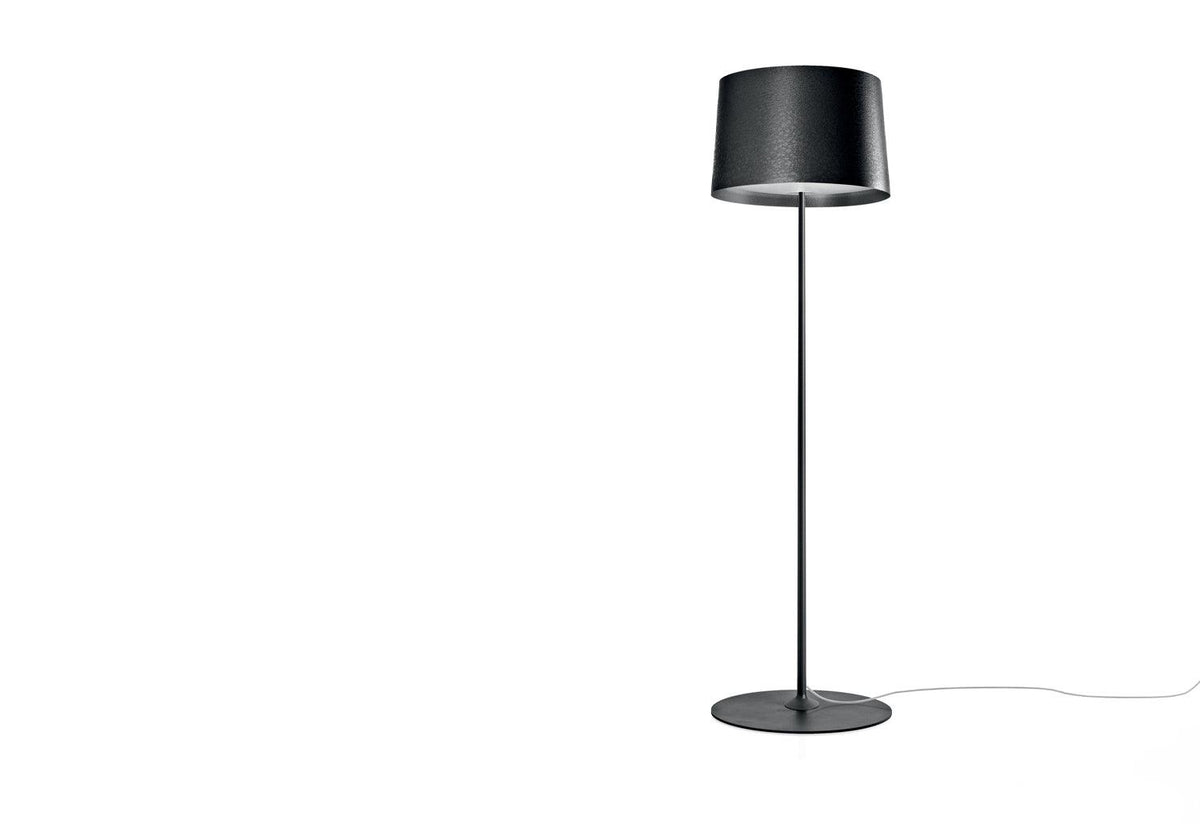 The Twiggy Lettura is a formal concept of lightness, embodied in a floor lamp with a thin rod and a large diffuser that effectively lights both up and down: the Twiggy reading lamp.