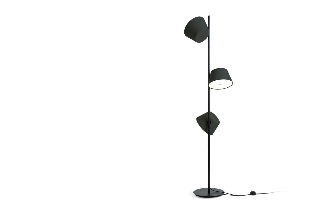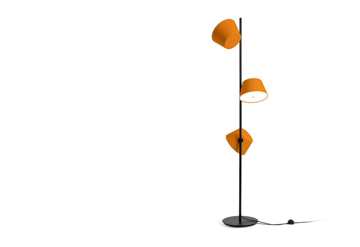 The Tam Tam P3 floor light has a black lacquered metal stem with three lacquered aluminium lampshades which are adjustable 360º in any direction.