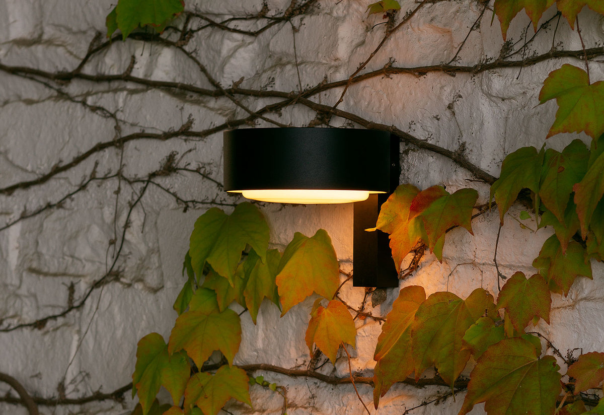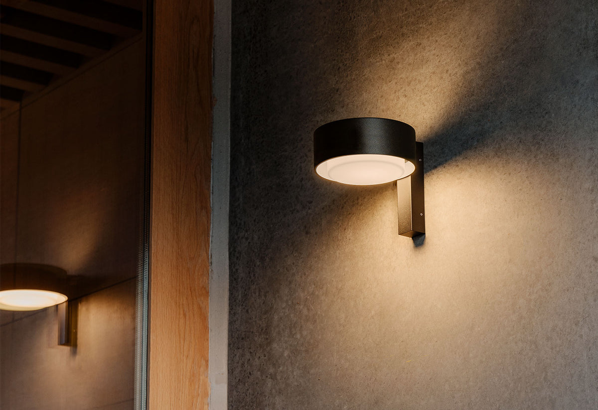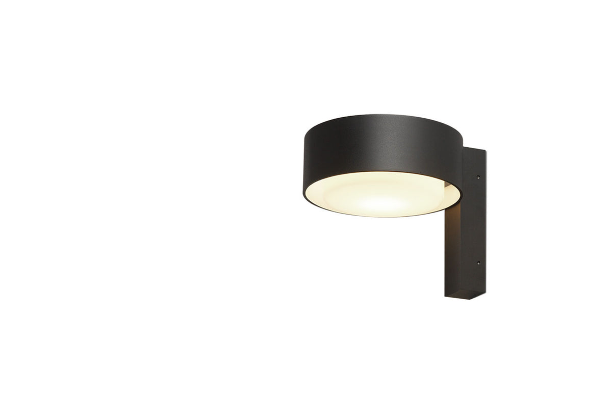Designed in 2020, the Plaff-on! A Outdoor Wall Light is part of Joan Gaspar's collection for Marset. Created with a perpendicular mount, this lamp adds new functionality to the Plaff-on! design. The sleek aluminium wall mount casts a subtle yet striking downward glow, while the open top lets light filter upwards. This minimal light features an opal glass shade that creates a visual illusion, appearing to float within the structure.