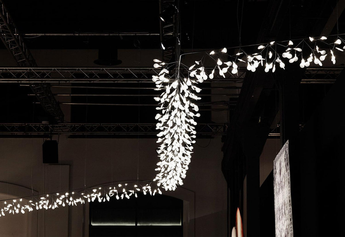'Leaves' play out from 'stems' creating a very technical but natural structure. This pendant light design is created by using the technique of coating conductive layers which would not be possible with normal wires.