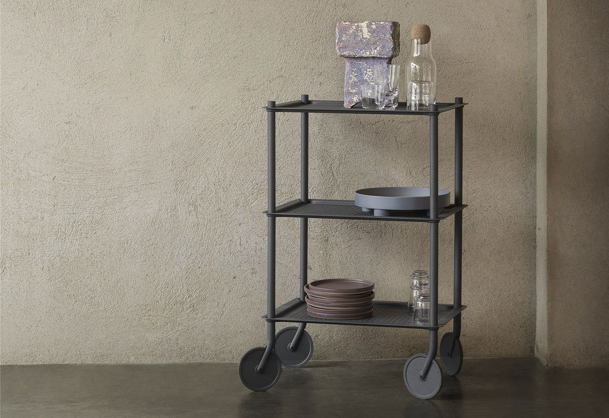 “With the Flow Trolley, we wanted to create a versatile design that could be used in any setting, be it at home, in the workplace or in a hotel room. With its grooved trays in embossed metal that make for an understated vibrancy, the Flow Trolley adds a contemporarily elegant touch to a traditional form while bringing simple functionality into everyday life.” — Normal Studio