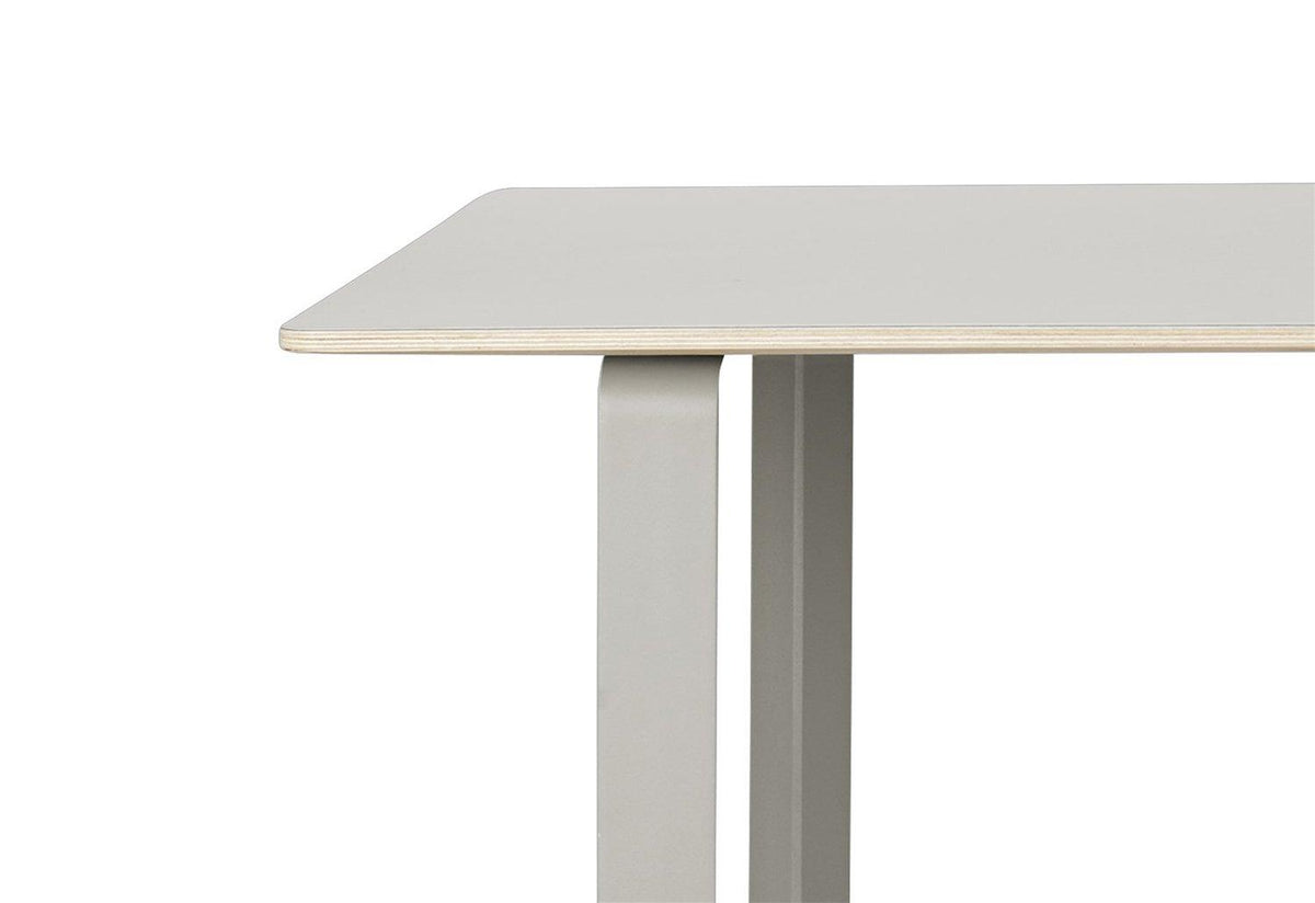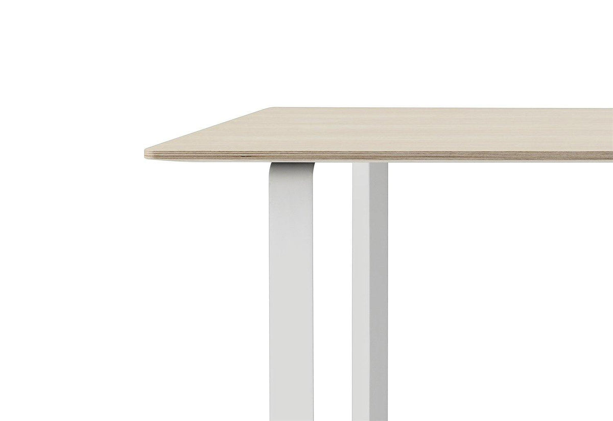 Plywood tabletop with surface in either laminate (white, black or grey), linoleum (black or grey), oak veneer, solid oak or solid smoked oak.