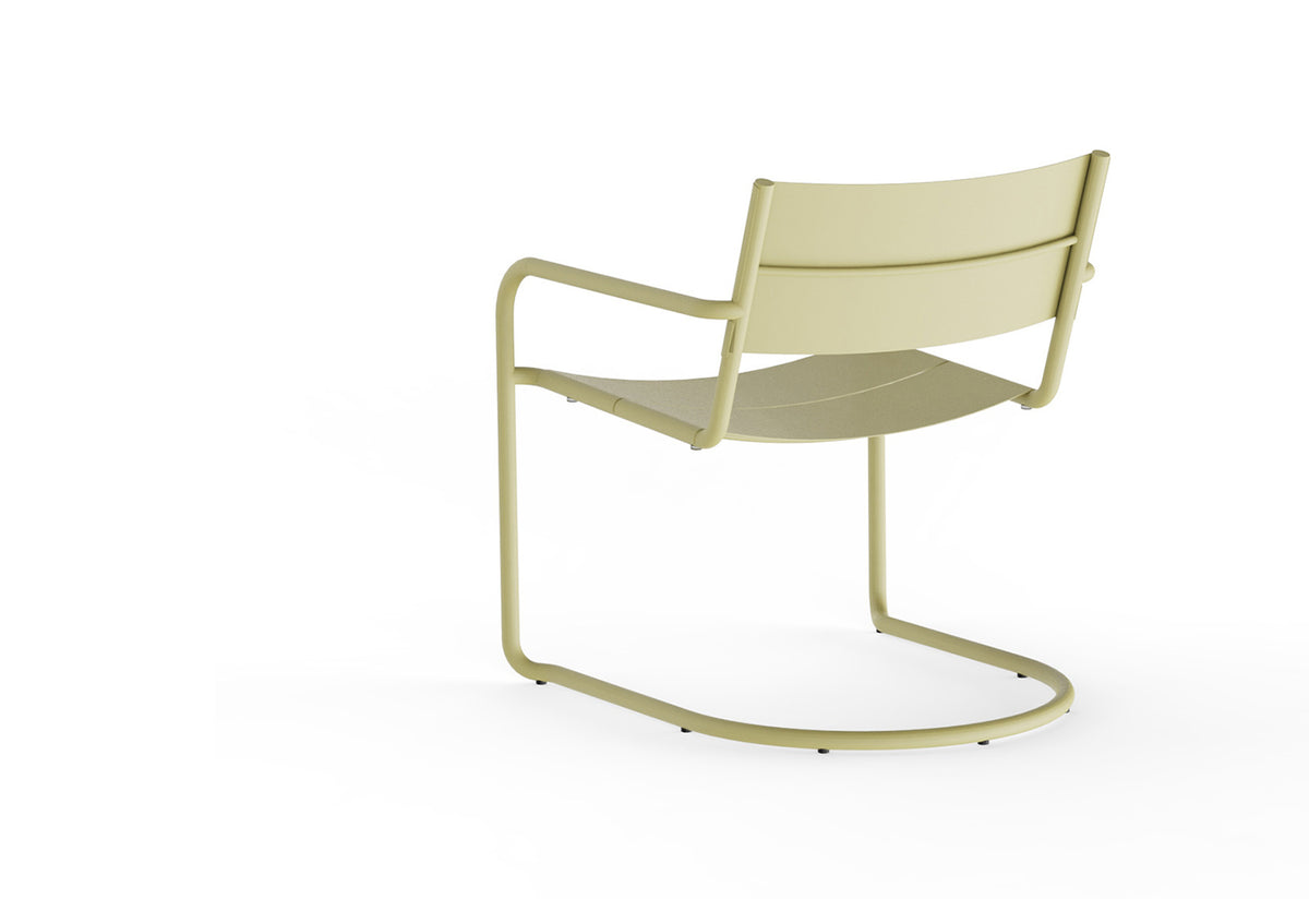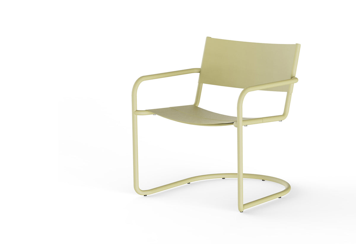 Designed to encourage relaxation and socialisation, the Sine Lounge chair is characterised by its low seat and cantilever frame, enabling a relaxing swing and recline when seated.
