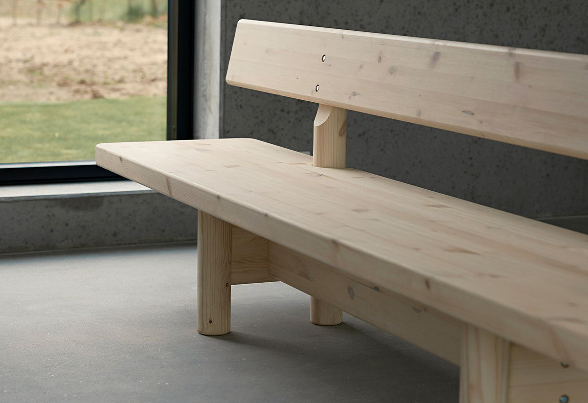 The Nordsø bench, available with or without a backrest, marries form and materials in a design which has been stripped down to the essentials. It features rounded edges with gently shaped details that bring softness and warmth to the robust seat.