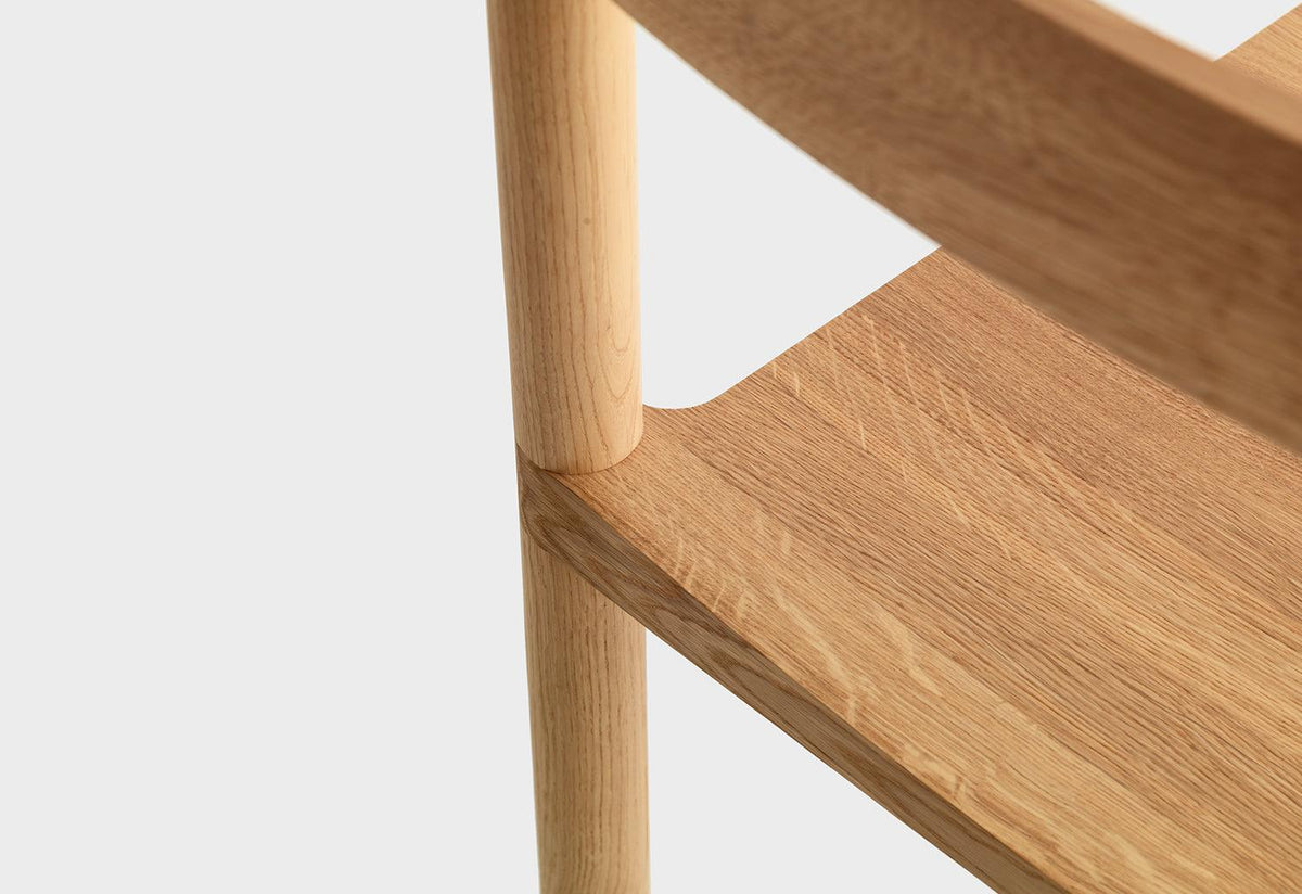 Inspired by the solid and vertical cylindrical pillars of pier constructions, the Pier chair is the new chair from Resident. Designed by Paris based designer Léonard Kadid in 2020, the chair is made completely from solid oak and features only tenon and mortise joints allowing the wood fibres to run continuously throughout. The seat and the backrest are carved using CNC rendering a comfortable seating position.