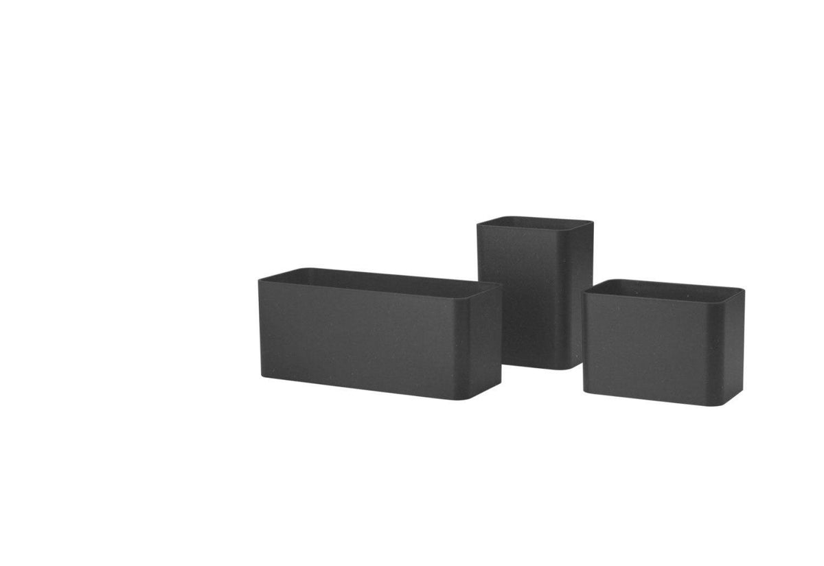 Set of three plastic organisers in varying sizes that can be hung on to any wall panels or grids (see More Products in the Range below). Ideal to store and organise small objects, cutlery or stationery.